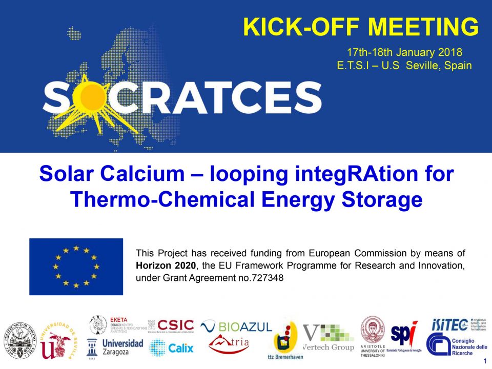 On January 17th and 18th the kick off meeting the project SOCRATCES (SOlar Calcium looping integRAtion for Thermochemical Energy Storage)...