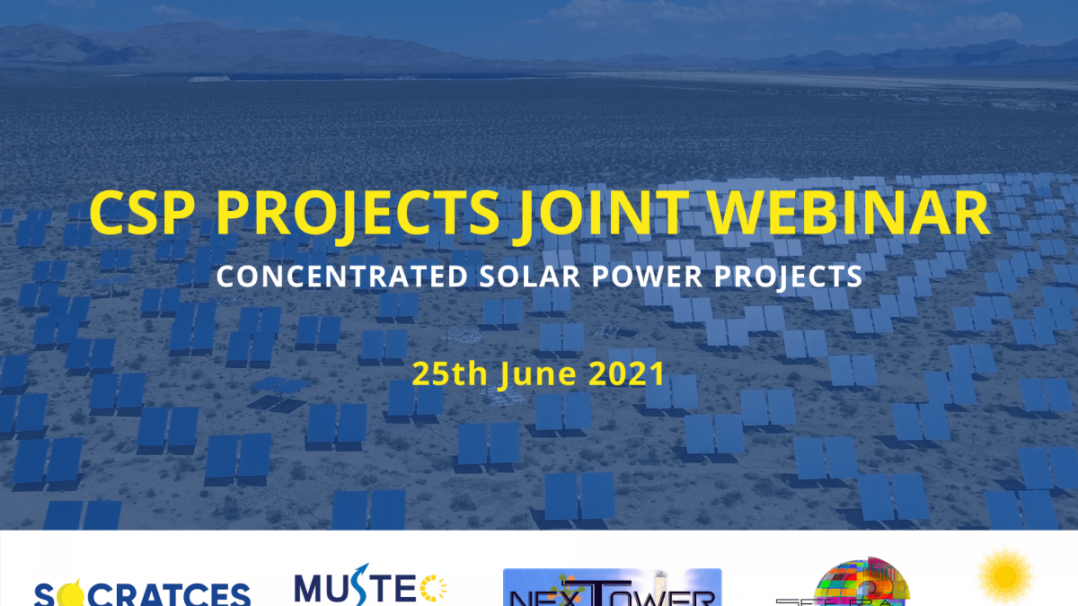 Under this framework, the SOCRATCES consortium organizes the CSP Projects Joint Webinar that will take place on the 25th June 2021. Other projects related to concentrated solar power will participate in the webinar, such as MUSTEC, NEXTOWER, SFERA-III and CSP ERANET.