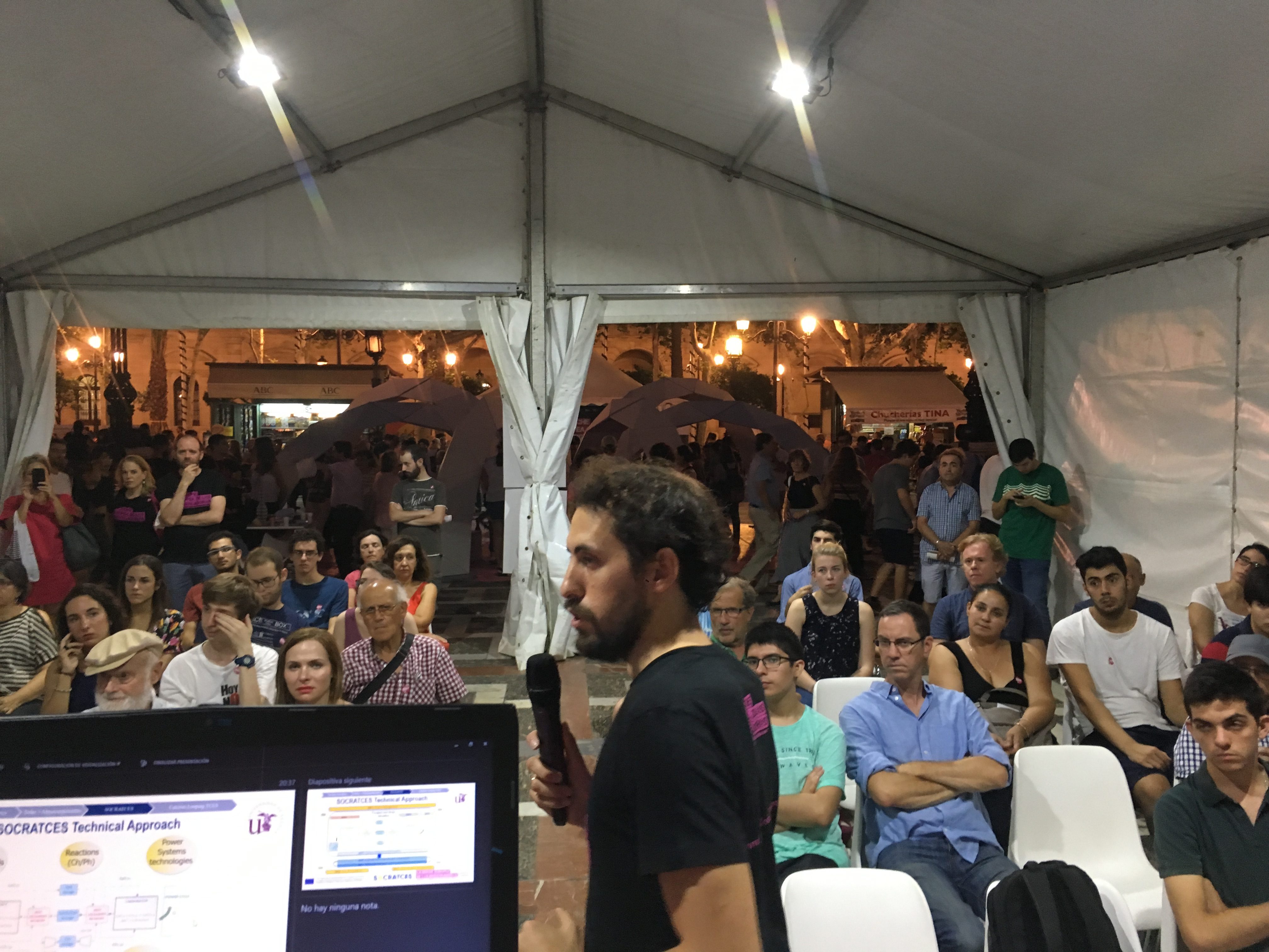 The SOCRATCES project was showed to the public in Sevilla thanks to the intervention of Ricardo Chacartegui, Director of the Secretariat for the Promotion of Research and Scientific Culture of the University of Seville, and the professor of the University of Sevilla, Carlos Ortiz. In it, they highlighted the potential of the sun as a source of renewable energy and how, through the prototype of the project, solar concentrating plants (CSP) are improved, making them more sustainable and competitive.