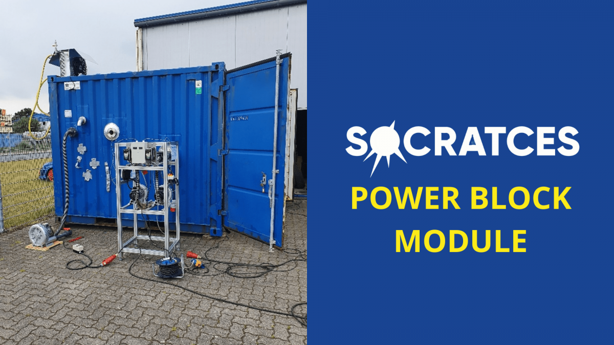 The power block is of immense importance to the SOCRATCES technology, its chief role being conversion of liberated thermal energy in to electricity for consumers. While there are numerous different approaches of integrating a suitable thermodynamic cycle to SOCRTACES, for the power block for the SOCRATCES pilot plant, TTZ Bremerhaven, a German research institute, chose a rather novel and unique option of integrating a Stirling engine with the exothermic reactor constructed by CERTH. The power block serves two functions – converting the thermal energy in to electrical power, and preheating the air incoming to the carbonator. The 1 kW Stirling engine was supplied from the Dutch manufacturer Microgen. The integration was carried out using detailed CFD simulation results to enhance heat absorption rate.