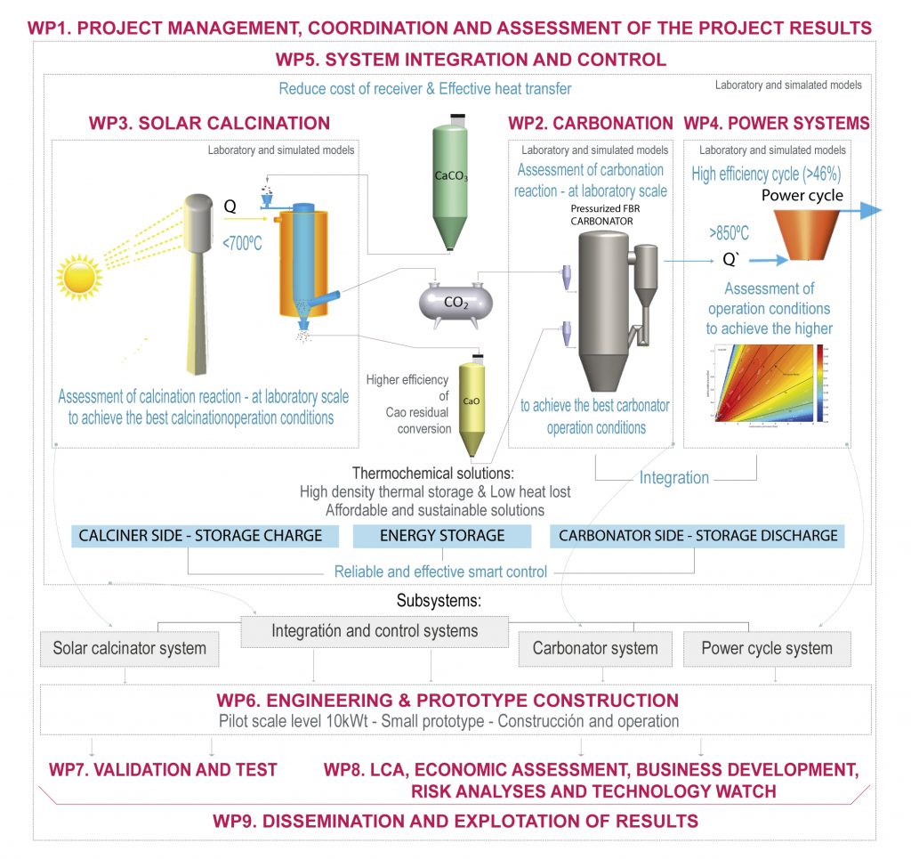 SOCRATCES is aimed at demonstrating the feasibility of the CSP-CaL integration by erecting a pilot-scale plant that uses cheap, abundant and non-toxic materials as well as mature technologies used in the industry, such as fluidized bed reactor, cyclones or gas-solid heat exchangers.